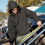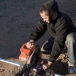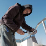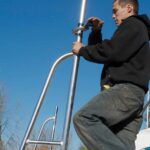 Lynch’s assistant, Jim Sullivan, made a cut in the railing, which would allow him to remove a section without causing damage. Owner Dan Mosher would later re-install it around the tower leg.