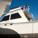 Second Look II is a standard issue 37-foot Egg Harbor convertible, a vessel that was popular back in the 1980’s. Without her hardtop, this boat’s flying bridge looks almost naked.