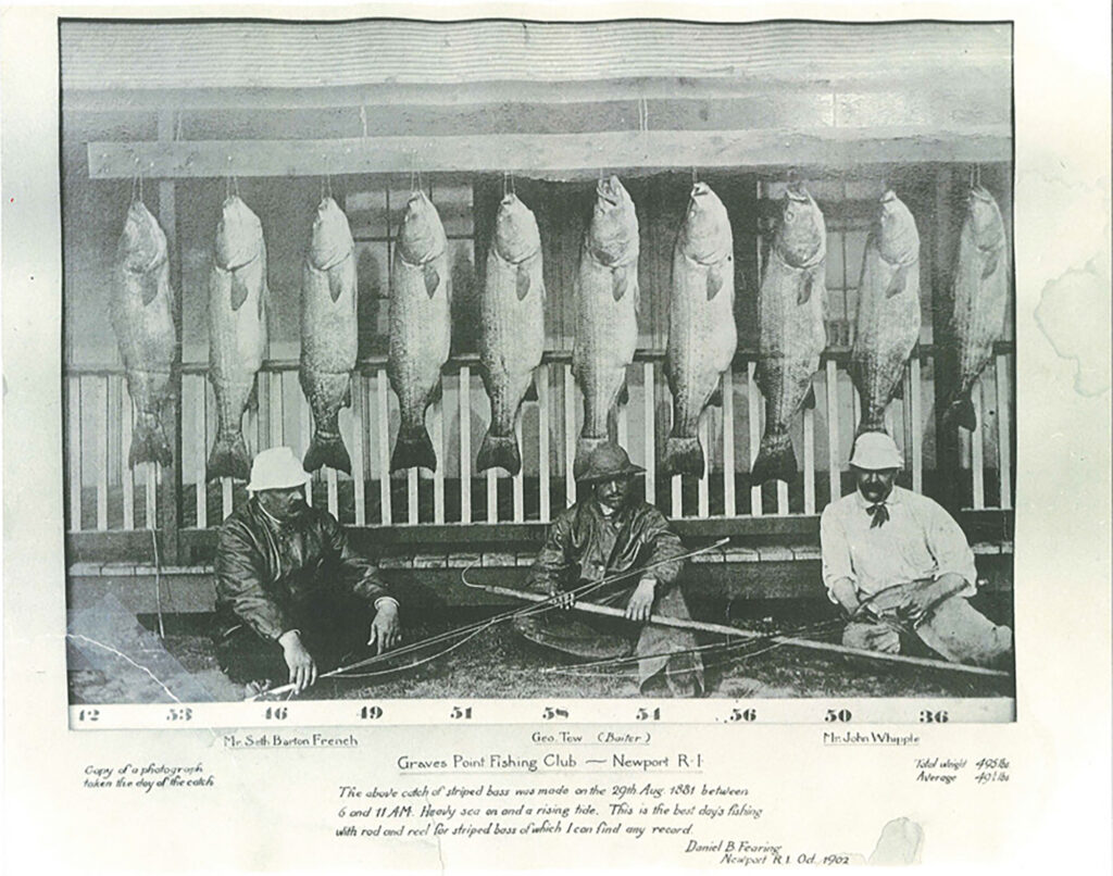 Captain Prent once told a writer for the now-defunct magazine Tidings about a day when he was helping this great-uncle haul his seine off East Beach in Watch Hill. That day, he said matter-of-factly, they netted a striped bass weighing 105 pounds. That he said it so casually makes me believe it was true. All along the striper coast are stories of linesiders of yore weighing 100-plus pounds, nearly all taken by commercial men.