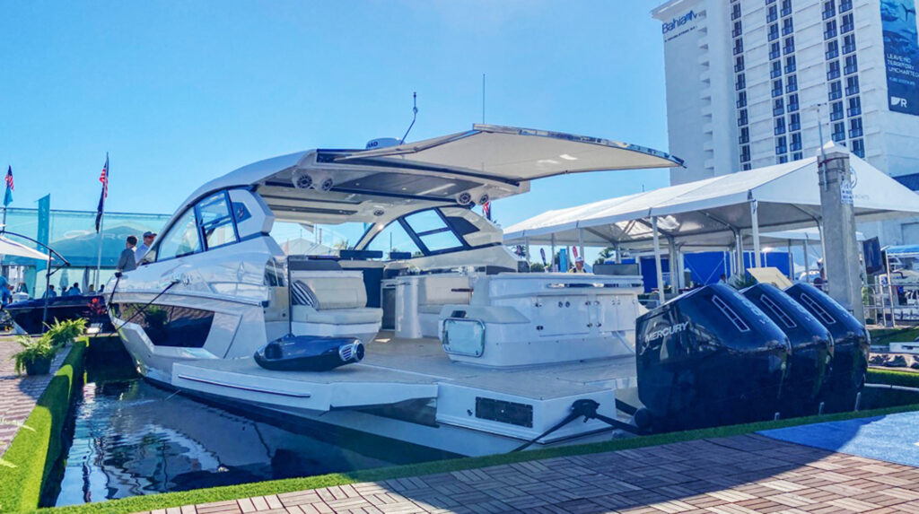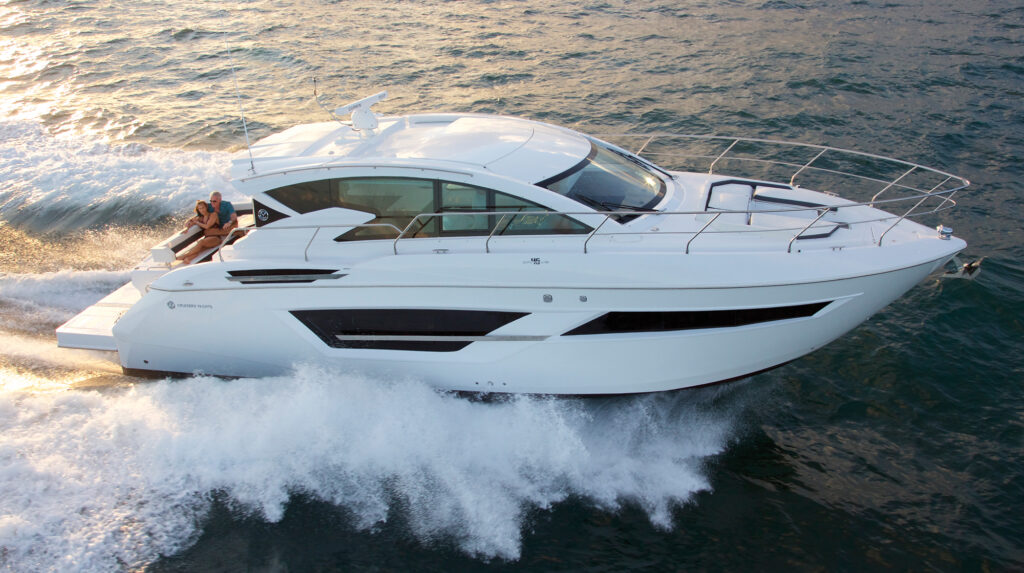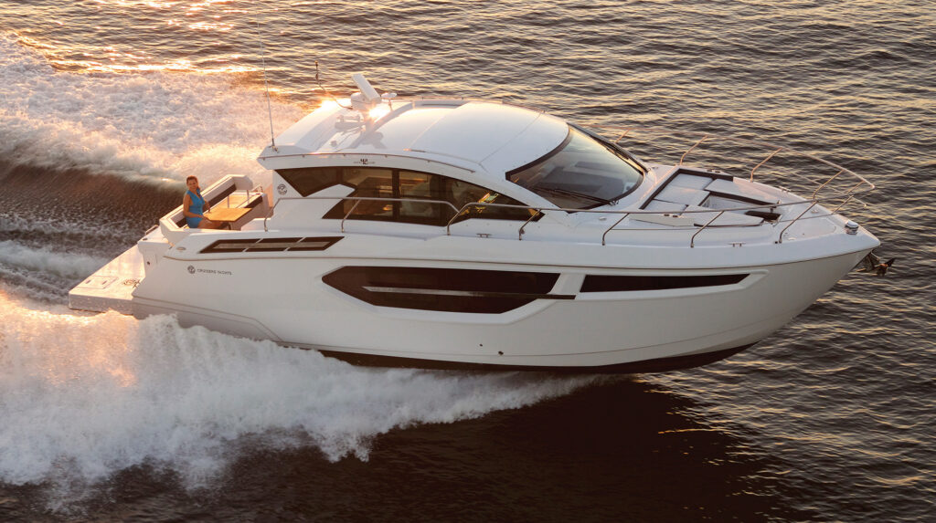 The new flagship of the series signals further refinement of Cruisers Yachts’ dayboat-with-accommodations design.