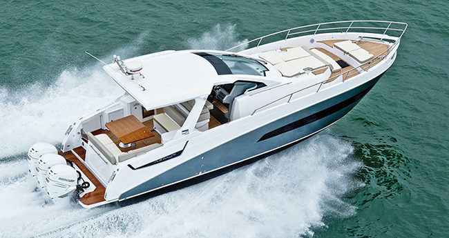 Deputy Editor Jason Y. Wood aboard the Palm Beach 65 Fly at FLIBS 2016.