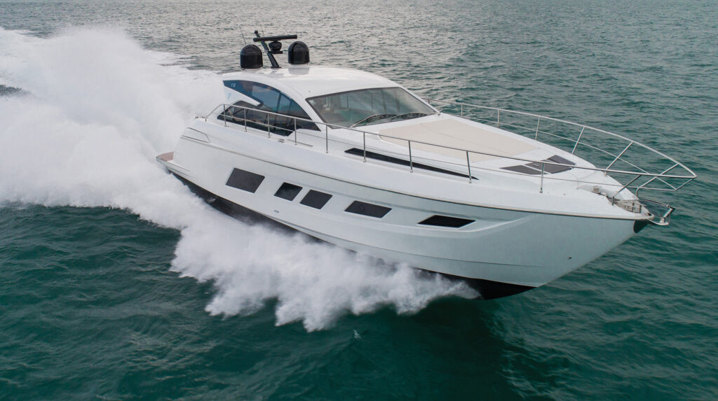The first in Filippetti’s line of Italian-made sport yachts boats surface drives and twin 1,200-hp MAN engines. We take it for a spin on Biscayne Bay.