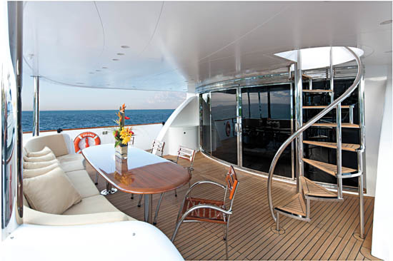 An extravagant interior makes this an exceptional charter yacht.When a yacht is intended to join the crowded South Florida charter circuit, she has to stand out. In order to make their new 100-foot Hargrave King Baby into one of the more memorable vessels around, the yacht’s owners hired Yacht Interiors by Shelley, which gave her a
