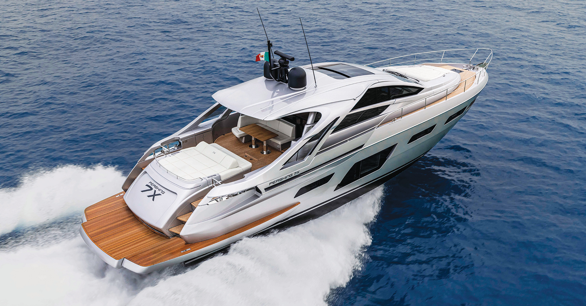 The newest Pershing is 4 tons lighter and combines high performance with production boatbuilding, Italian style.
