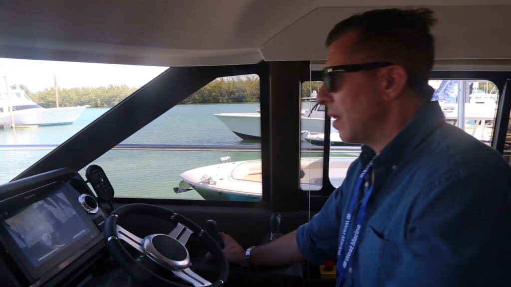 An IPS-equipped Prestige 460 is an ideal partner to trial Raymarine’s new assisted docking system.
