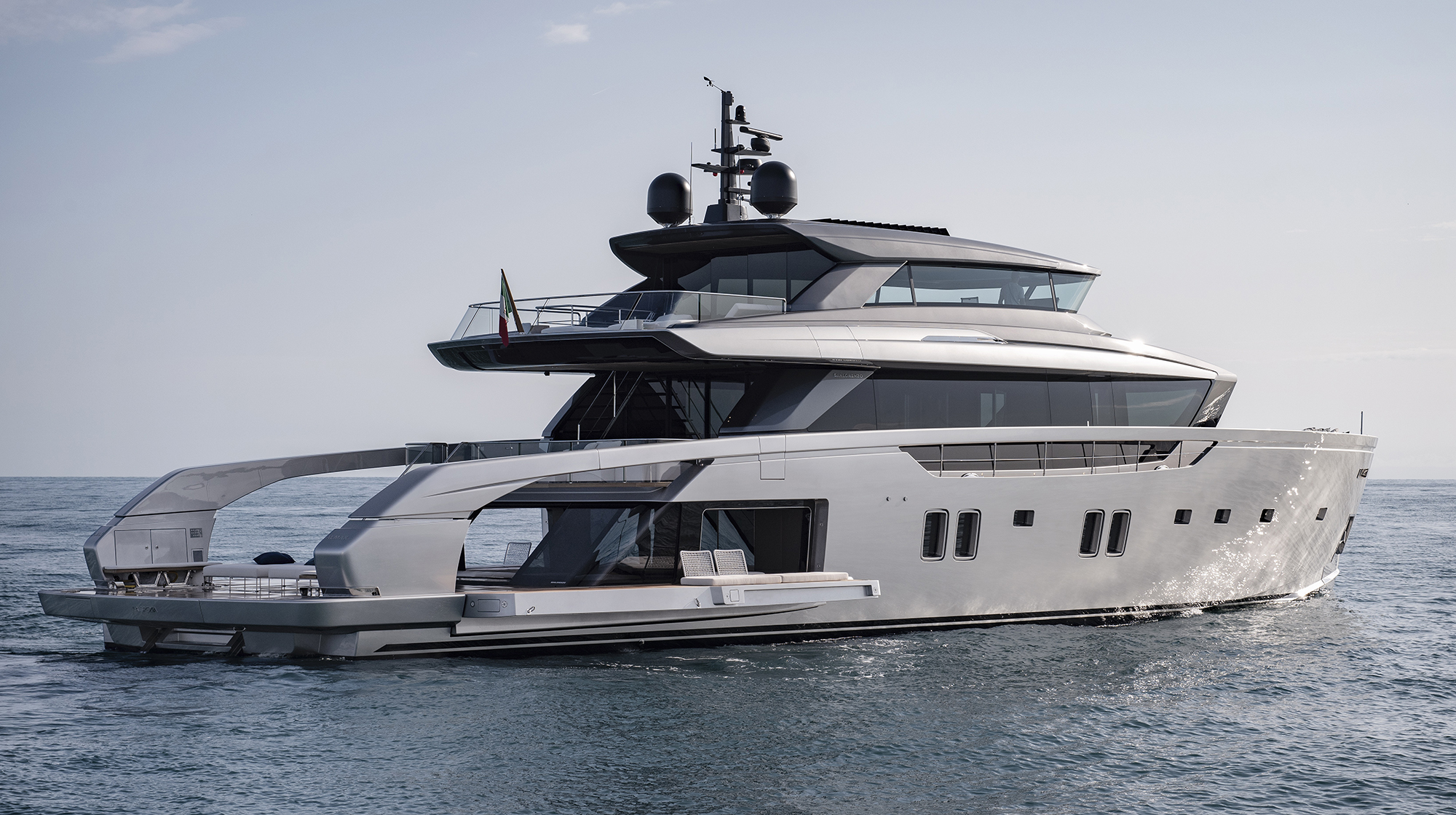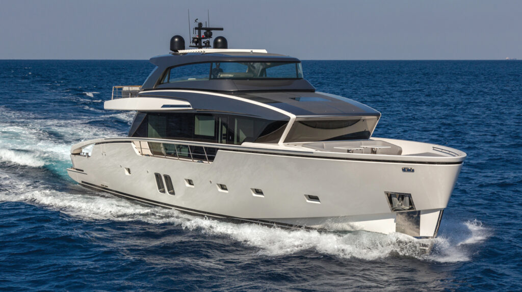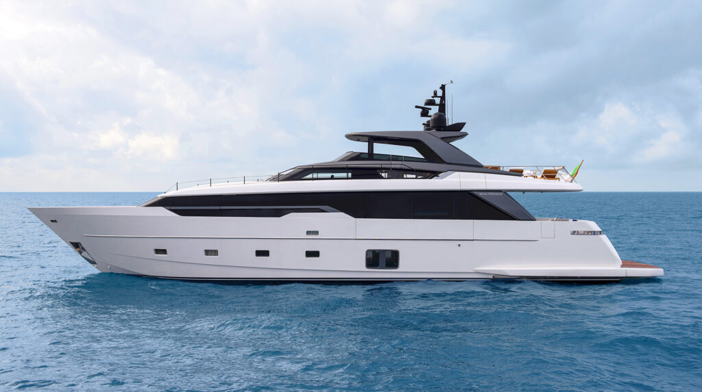 The first in a new line from this Italian shipyard, with three engines and an emphasis on performance and efficiency—and spectacular design.