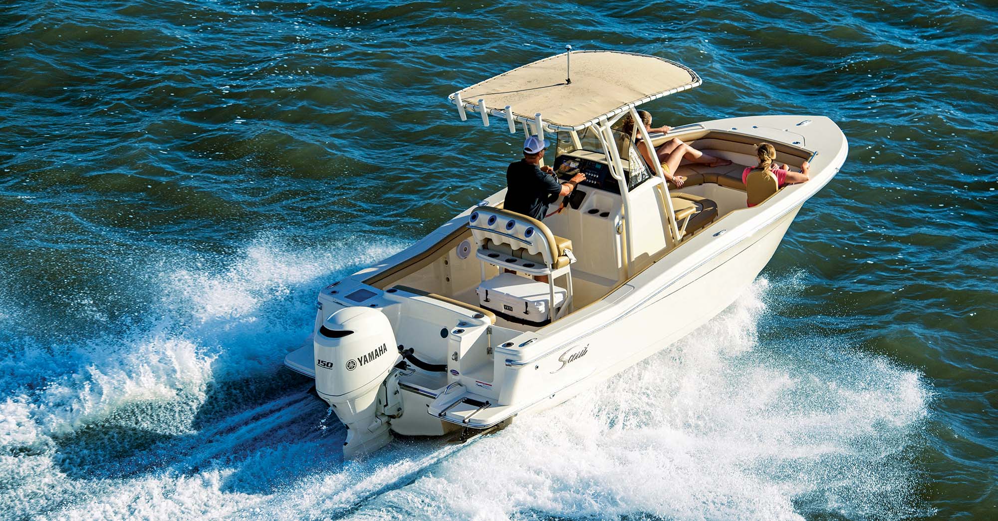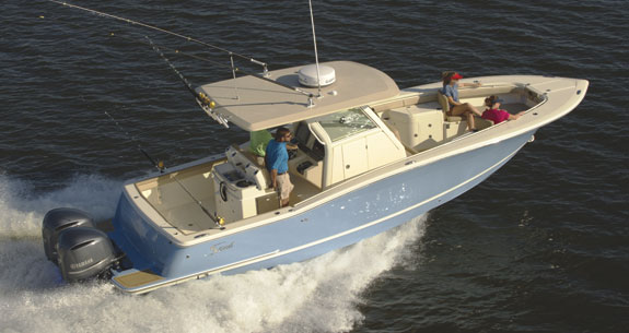 Scout packs the technology into its 320 LXF PR center console, from the efficient hull design to an advanced distributed-power system.