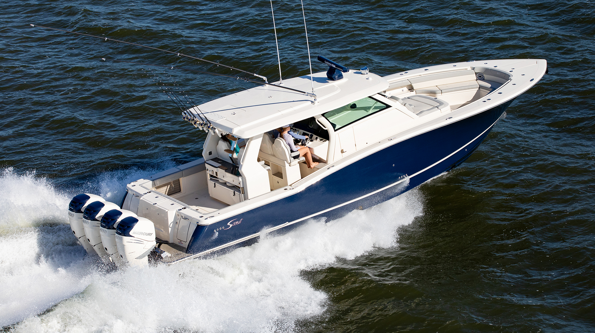 When paired with the brawny 600-hp Mercury outboards, the Scout 425 LXF is a luxe center console with speed to spare.