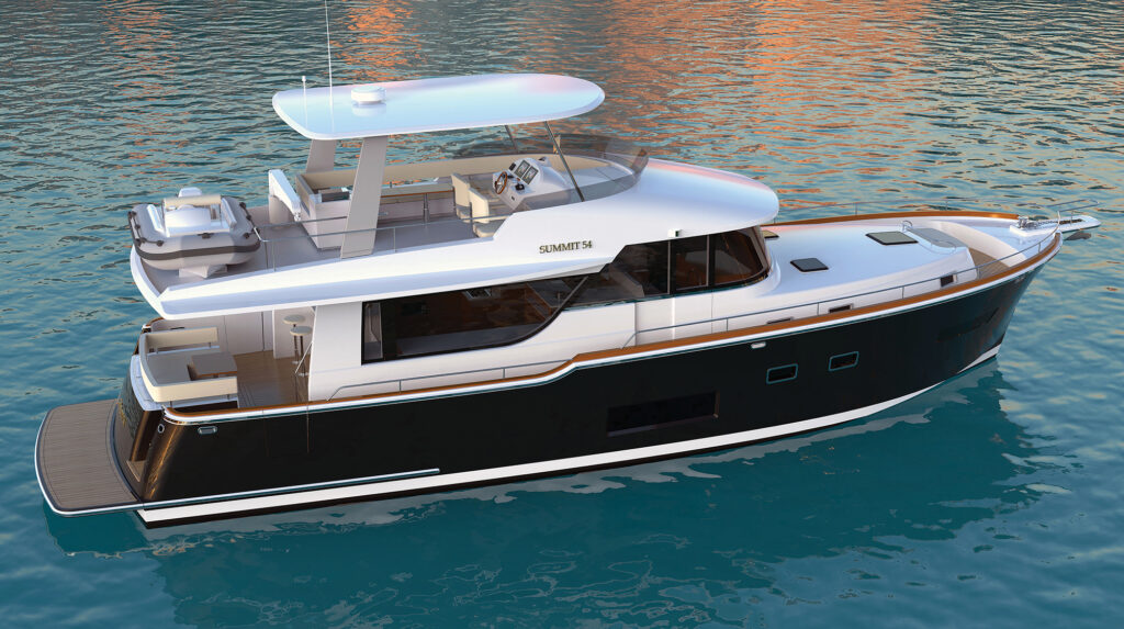 Summit Yachts—a new brand from Kadey-Krogen—finished its long journey from Taiwan to the U.S. The only thing left was offloading it in Savannah. That and to peel off the protective tape.