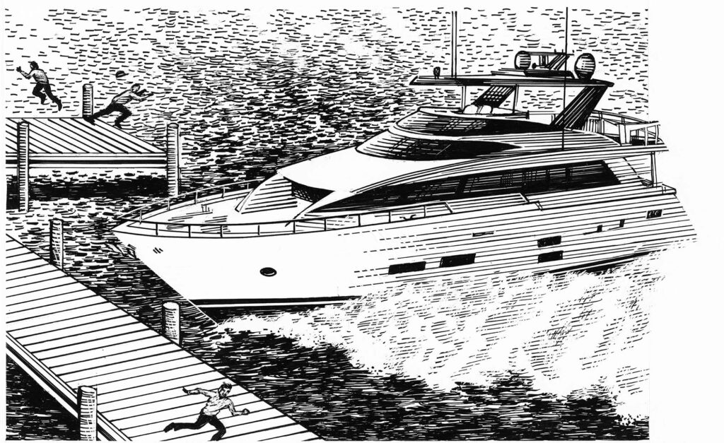 At the 2020 Miami boat show, the unthinkable happens: Someone steals Capt. Bill Pike’s shoes! A whodunnit is set in motion.