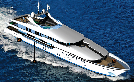 You expect to see innovation all over a new boat, but in the placement of the deck furniture? Well, even standard features such as this got a rethink on this 55-meter (180-foot) design from Warwick Yachts. The New Zealand builder cast off the typical centerline bench-style settee on the aft deck in favor of two C-shape settees in the corners of the bulwarks. The