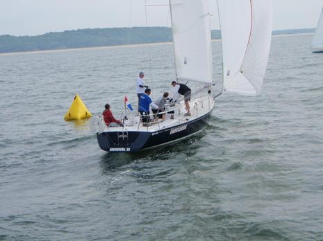Positioning those marks on the race course is a challenge, as they need to be in precise spots based on wind direction. It is not uncommon for an inflatable to be hundreds or thousands of feet from where the race officials need them to be due to a wind shift. Ideally, when the sailboats pass each mark, the next mark is at a wind angle that meets the criteria for a good race course. It takes time and a powerboat to go back, lift the anchor, and move marks if the wind shifts. Usually there is more than one mark per powerboat, creating work for the race committee to move the marks around while the sailboats wait.