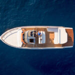 From an aerial view, the decks have good seating, including three seats at the helm, with an alfresco galley console behind them, fore and aft sunpads, and a generous swim platform.