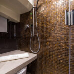 While the finish is fine, certain accommodations must be made to fit this much luxury into an LOA of 37 feet 5 inches, and so we find the MSD tucked beneath a bench in the finely tiled shower.