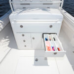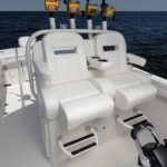 The transom has fold-down seating—no surprise—but there’s also room to fit your boots under searails,