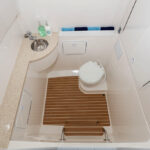 The head has a civilized amount of space and the forward seating that converts to a sunpad