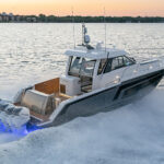“It was unique for a big-boat builder to come down to this market. We’re competing with serious center console builders,” says Doleski. “Brand loyalty is helping us go up against the likes of Boston Whaler and Pursuit, but it’s not easy. We’re trying to show features that those boats don’t have. We want people to compare our boats with those other brands and go feature-for-feature to see how much our boats have.”