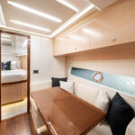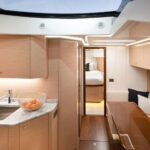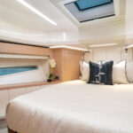 Down below, this model takes another, well, divergence. Where the Sport model was a true weekend warrior with a berth forward, the Coupe is a true two-stateroom cruiser. How long you spend aboard is in the eye of the boater; one man’s weekender is another man’s liveaboard, but I could reasonably see a small family spending a couple weeks aboard at a time.