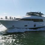Breakthrough design ushers in a breathtaking experience aboard the Hatteras M90. The latest model to enter the Hatteras fleet, this stunning open-concept features a crisp, light-filled interior that strikes a perfect balance of dramatic form and ingenious function. The M90 incorporates an inspiring range of global design influences to create new uses of living, dining and entertaining spaces. Distinctive features include signature skylights as well as a sweeping staircase to the expansive bridge. An amazing play is created between the interior and exterior spaces, which include a modular bar on the aft deck and ample lounging space on the side decks and bow. The impact of the massive 22’6″ beam is felt throughout, including in the four luxurious staterooms.