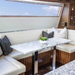 SnowGhost is the next generation motor yacht from Hatteras Yachts. The M90 Panacera series is featured in several Yachting articles and even received 2018 “Best of the Best Award”. This is a fully loaded yacht that features a huge hard top with climate control. The outdoor beach club style spaces with sail shades on the upper aft deck and bow area are amazing for entertaining large groups.
