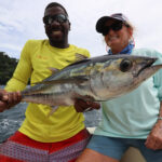 The lodge is known for black, blue, and striped marlin, roosterfish, Pacific sails, Cubera snapper, yellowfin tuna, dorado, wahoo, amberjack, mackerel, and more. Captains and mates are experienced locals who are second to none when it comes to trolling live baits for blue and black marlin. They’re also experts at rigging an effective Panama strip bait, which we used to fool several sails.