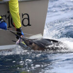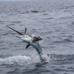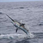 Our second day offshore started with rain and ended with sun, not atypical for the tropics. Around 9:30, Brownlee and I took back-to-back Pacific sails weighing 120 to 135 pounds. Brownlee’s put on a good show, jumping a half-dozen times. We released four sails in all.