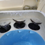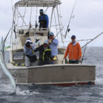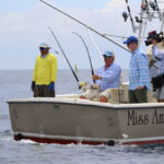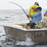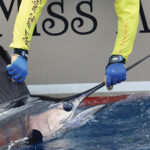 After about an hour and 20 minutes, with the boat and captain doing their part, the mate had the leader in hand and guided the fish, estimated to be between 350 and 400 pounds, to the surface. It lay alongside the transom as we took a couple of photos. Then the fish rolled over, the circle hook dropped out, and down it swam.