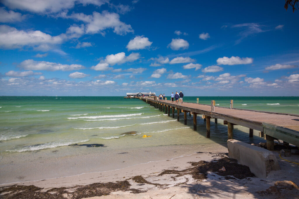 The northern end of the island is known as Bean Point. It’s named after George Bean, the island’s first homesteader, and is the heart of island life. Pine Street bisects the northern end from Anna Maria Beach on the Gulf side to the City Pier, extending out into Tampa Bay’s cyan waters. Bean and fellow developer Charles Roser built the first city pier well out into the Bay’s deep water, allowing steamboats to offload visitors to their new town. Visitors enjoy the pier as much today as they did when the original was built over 100 years ago.