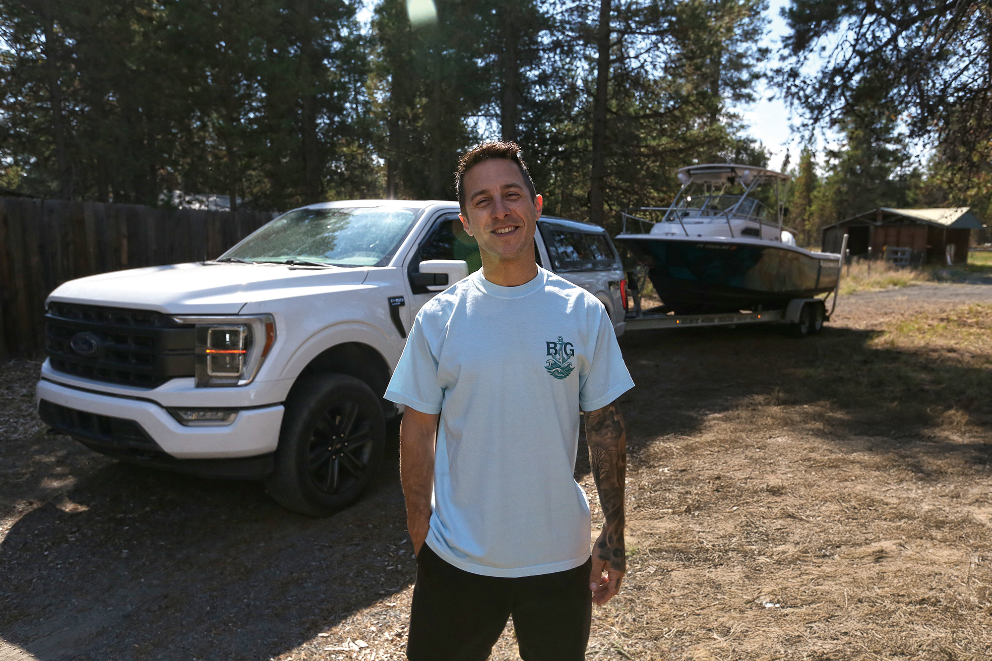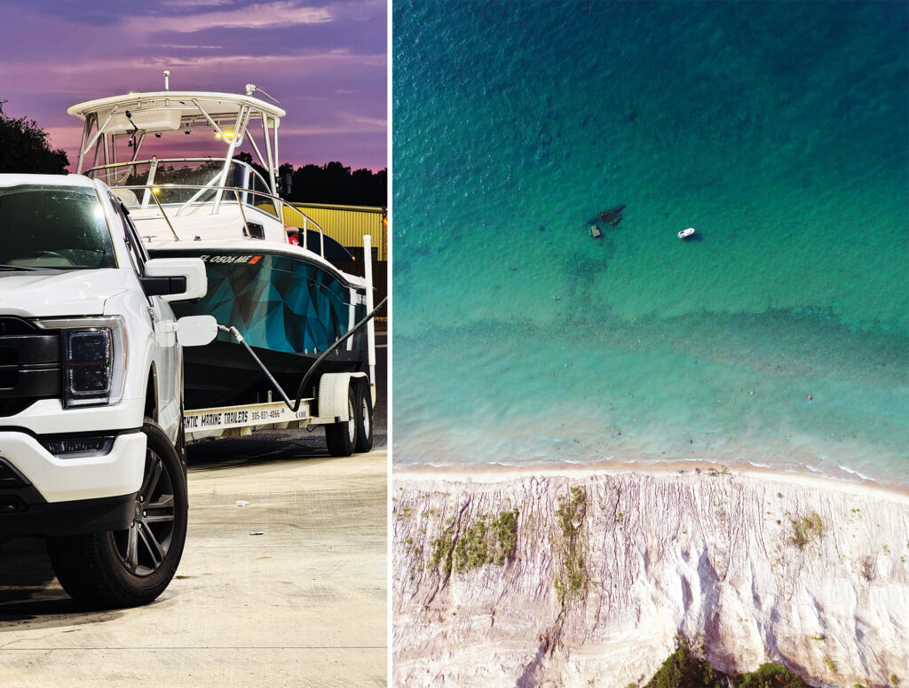 Getting the Grady-White this far hasn’t been without incident. By his own count, he’s already trailered the boat more than 5,000 miles, winding from Florida highways to mountain switchbacks. He’s comfortable behind the wheel of a trailer— “I’ve done it since I was really young,” he shrugs—but even the confident tower can’t escape the occasional mishap.