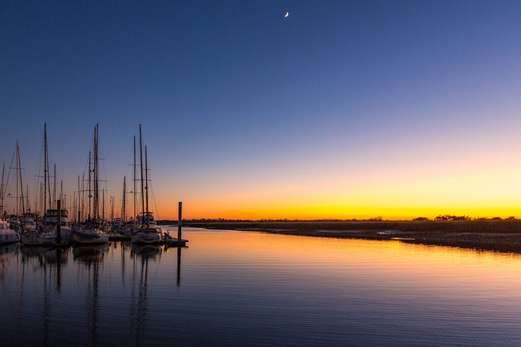 Boaters passing through or readers of this magazine may associate St. Simons as the location of the Golden Ray maritime shipping accident. In 2019, the cargo ship rolled on its side in St. Simons Sound with more than 4,000 new cars on board. Fortunately, no crew members were lost in the accident, but it took almost three years and an enormous engineering feat to remove the ship and its contents, all of which were a total loss. It was a surreal sight to motor past the behemoth ship resting on a sand bar. Today, the ship is completely removed and successful environmental mitigation is taking place along the island’s shoreline.