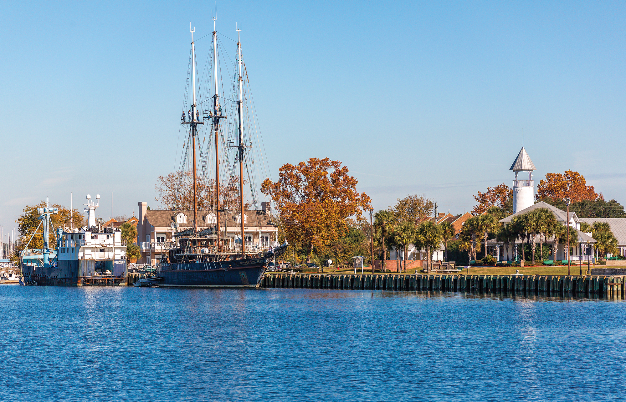 The largest of the Golden Isles, St. Simons, is the heart of activity. The main village is on the southern side of the island with a charming selection of shops, hotels and restaurants. The northern end is home to Cannon’s Point Preserve, a 600-acre green space with a winding maritime forest and miles of marshes that link to the Altamaha River. Also on the island’s northern shore is Fort Frederica, a 1736 colonial site where the British defended Georgia from the Spanish who occupied Florida. What remains today is an archaeological site that’s open to the public and protected by the National Park Service. The fort offers a window into the rich history of the island’s past. Between the island’s northern and southern shores, cruisers will find breathtaking beaches, world-renowned golf courses and enough wild outdoor spaces for all the kayaking, fishing, hiking and biking an outdoor enthusiast could want.