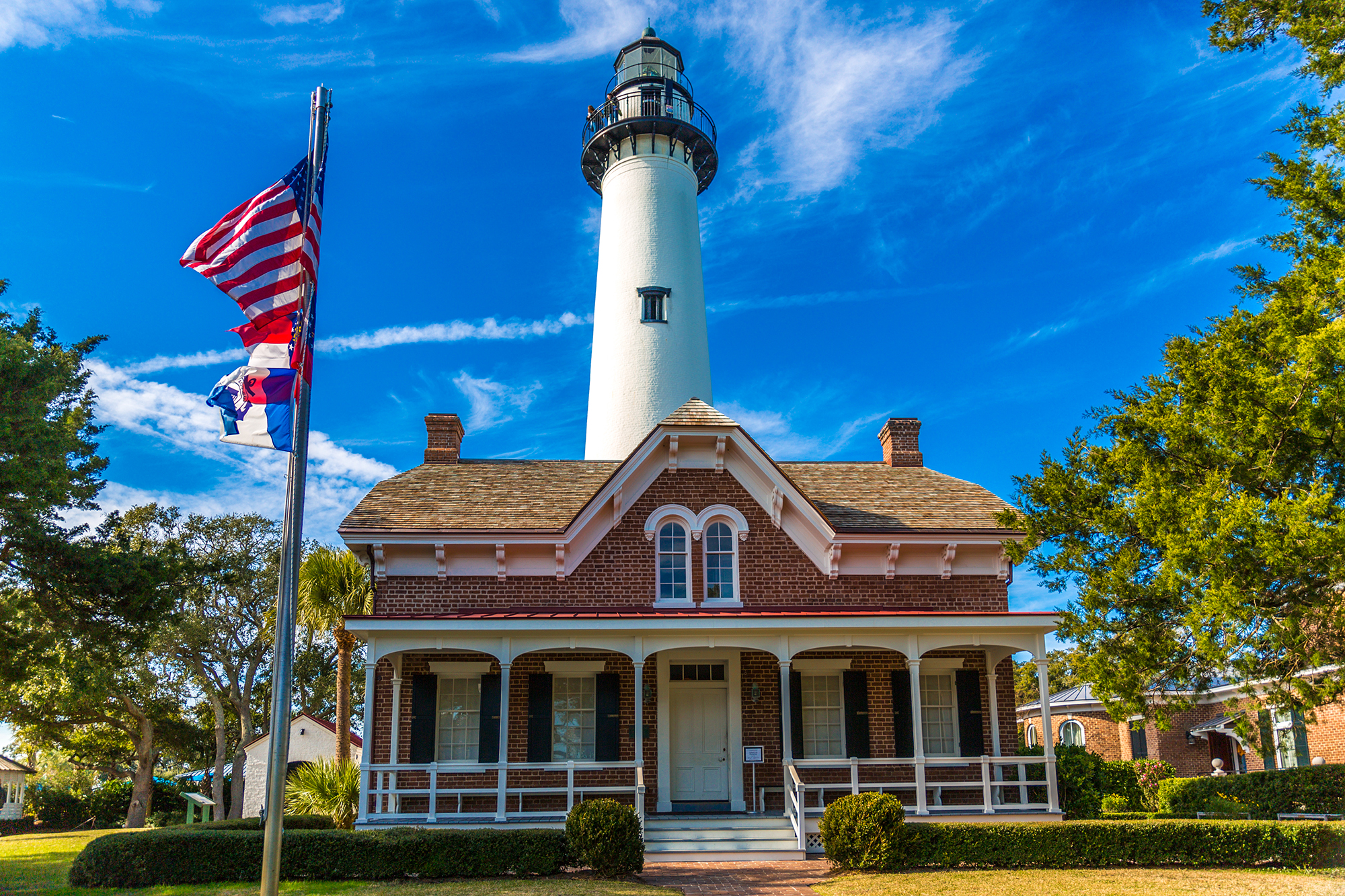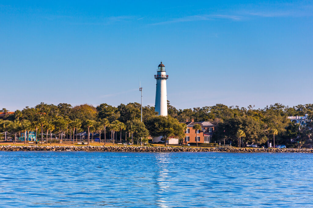 The restored St. Simons Light remains an active aid to ships entering St. Simons Sound, with its original Fresnel lens shining 23 miles out to sea. Unlike many operational lighthouses, this lighthouse is open to the public, with visitors welcomed to climb the 129 steps to the top. The untimely demise of a lighthouse keeper in the 19th century has also given St. Simons the unique distinction of being the only known “haunted” lighthouse.