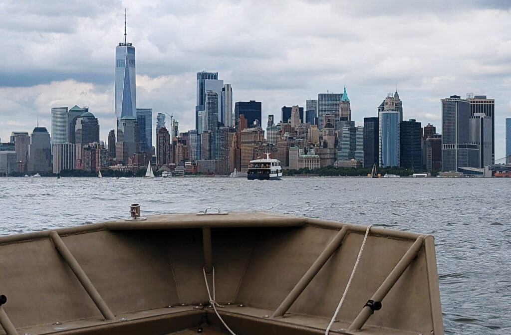 So, getting on up to New York, I pull into New York Harbor in a jon boat, man. It was so cool. It was unbelievable, seeing all the ferries cutting across and coming up to the Statue of Liberty. I kind of watered my eyes as I entered the harbor. There’s New York, there’s where the Twin Towers used to be, there’s the Freedom Tower, there’s the Statue of Liberty. Made it in the Erie Canal. Jack, my American Great Loop Angel, talked to everyone. Had a crowd there as I entered the Erie Canal. It was so much fun. The 200th anniversary. So much history here, I could spend days talking about the Erie Canal and the beauty and the people and the history and the museums and the bike paths.