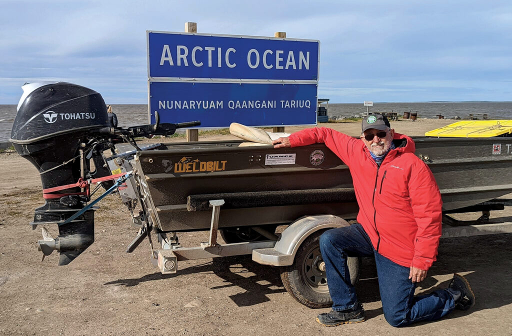 And then I guess the next big venture was, a friend was going to go try to paddle across the Arctic. And I said, well, I think it’d be fun to come up there and come from the other side. I don’t know anything about the Arctic. And then there were months of the process of working with the Canadian government, and, you know, filling out forms that said, like: “What’s the tonnage of your vessel?” Less than one. I filled out my qualifications. So, they said, “Mr. Youens, you are highly qualified. You know, you should be doing the Arctic and crossing the Northwest Passage, but we cannot recommend that you do it in that boat”—my Weldbilt, 16-foot. I said, “Are you going to stop me if I try?” They said, “No, but we’re going to have some requests.” They wanted to follow my tracker. They requested that I contact them every day with the weather I experienced, and what my intended route was. That was in ’22. On the second day, I encountered a piece of the polar ice cap that had broken off, and Amundsen Gulf was just covered in sea ice. I didn’t see a way through so I got on my InReach, and I was texting back and forth with the Canadian government, saying, “Can you recommend a route?” They said, “It’s pretty big, but it’s been rocking, so it should be fractured enough to work your way through.” And as I was texting them, I had this vision. It was a blue Suburban coming out of the water right next to my boat, about 4 feet away. And that Suburban just kept coming up. In my mind I was going, ‘Why is there a blue Suburban coming out of the water here?’ It was a bowhead whale— probably a 65-footer. It was maybe 4 feet from my boat. It probably rose about 8, 10 feet in the air before his eyeball exited the water. And it was like 4 feet from my right shoulder. I could have reached over and leaned out and touched its eyeball. And we just had a little commune for about 6 seconds. He was just, the Inuit call it spy hopping—checking it out. He was just saying, you know, what’s this jon boat doing in the Arctic? It was such an amazing experience.